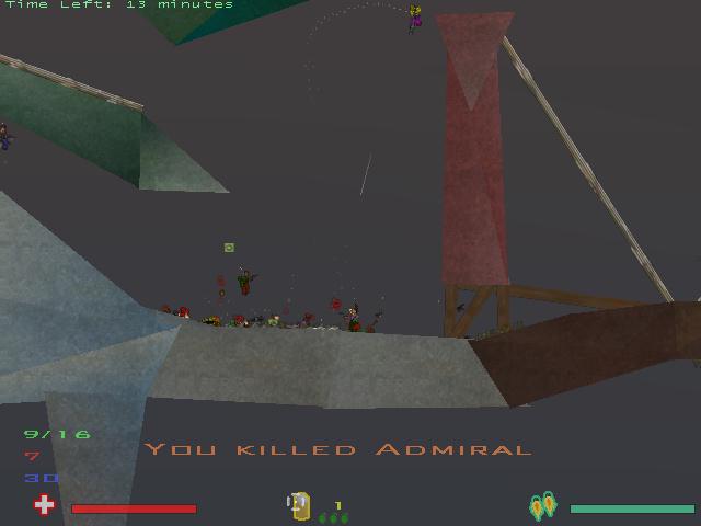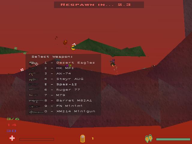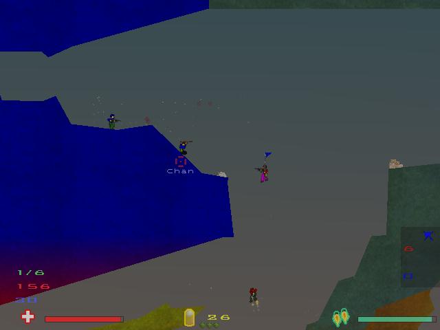 Ten different weapons to choose from, with the minigun being my favorite. Heck, you don't even need to use your jetpack when you are using the minigun. Great sound as well, I can especially recommend the "Gore" backgroundmusic. You can even play Soldat on servers across the world. Just in case you can't find anyone in your LAN. |